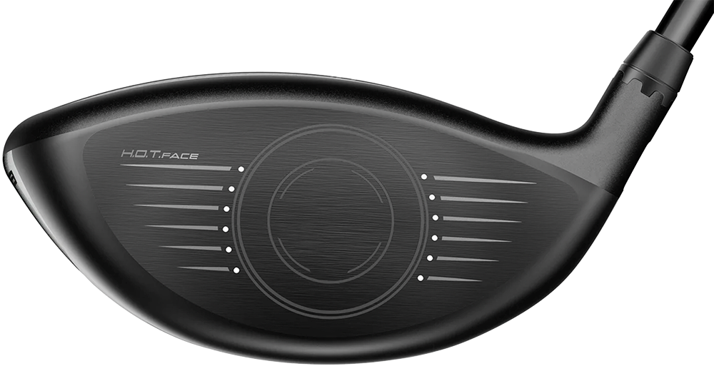 A forged PWRSHELL face insert maximizes flexibility for faster ball speed and higher launch. A H.O.T Face design uses artificial intelligence to create a variable thickness pattern that delivers more efficient speed and spin across the face.