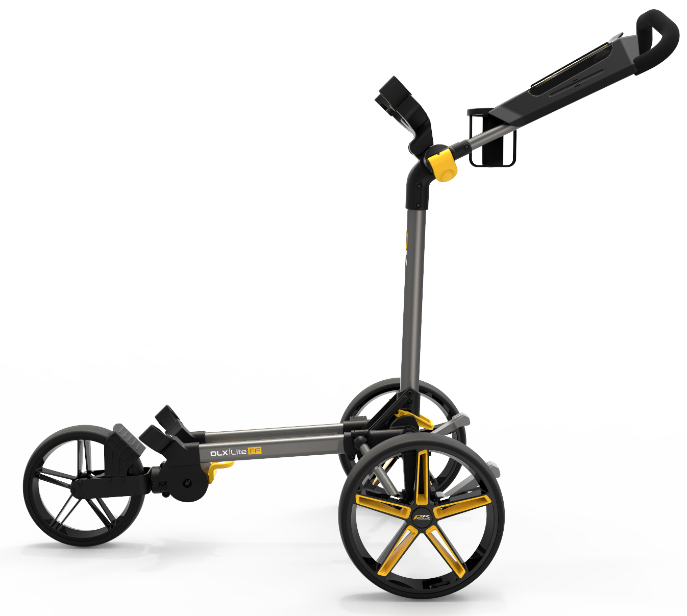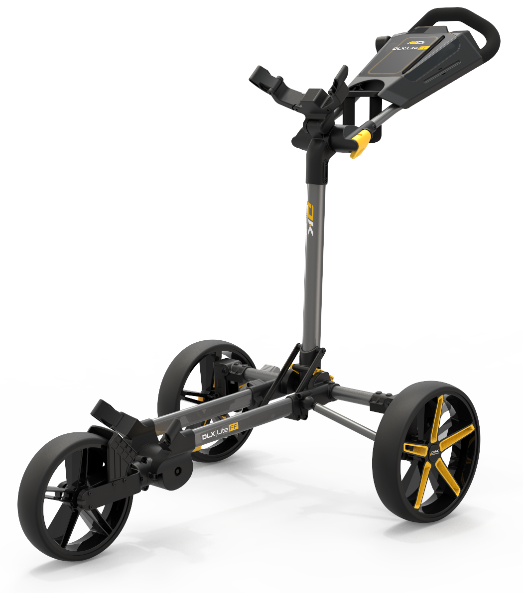 NEW Powakaddy DLX-Lite FF Push Trolley – GunMetal/Yellow